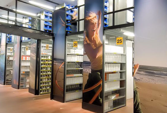 Comme solution haute densité, une machine de stockage Dexion permet aux cabinets médicaux ou aux pharmacies :